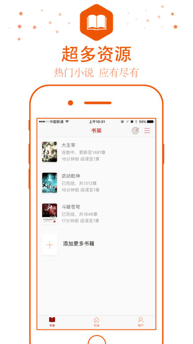 最专业的小说阅读器 他有着最丰富的小说资源,最优质的小说内容,最全面的小说类型,最舒适的阅读体验,只为成为你身边最亲密的阅读小伙伴儿。 【特色功能】 海量资源:来自互联网海量小说搜索资源,即搜即得; 优质内容:大量完结、连载、出版小说,同时提供高品质听书资源,品质最优; 全面的小说类型:玄幻、都市、言情、武侠、科幻、军事、职场励志,应有尽有; 舒适的阅读体验:多种阅读主题、夜间模式、翻页效果,随意切换阅读页横竖屏; 实时的小说更新:连载小说,更新提醒,第一时间获取最新章节,随心阅读; 电脑传书:电脑手机同时阅读,支持EPUB、PDF、TXT、UMD格式,想传就传; 完美支持iOS10,适配iPhone7 、 iPhone7 Plus和iPad。