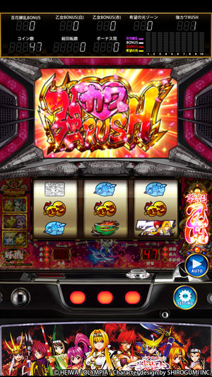 ■対応機種 iPhone4/iPod touch第4世代以降 ■OS iOS7.0以上 ≪注意≫ 本アプリは縦画面専用となります。(横画面への切替はできません) 『戦国乙女、パチスロに出陣!!』 2013年8月より全国一斉導入されたオリンピア人気機種 『戦国乙女〜剣戟に舞う白き剣聖〜』がアプリで配信開始!! □■アプリ紹介■□ 【POINT1】高品質な液晶グラフィックを搭載!! 戦国乙女シリーズ特有の圧倒的ハイクオリティ映像をアプリでも可能な限り再現!! 【POINT2】フルボイス&全楽曲を搭載!! 豪華声優陣によるキャラクター達はフルボイス。さらに全楽曲が最初から解放済み…