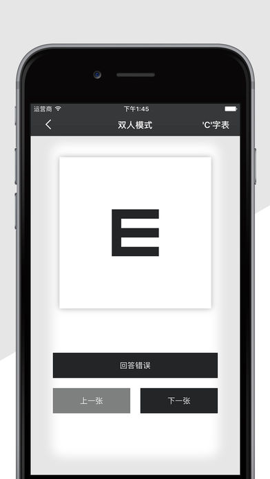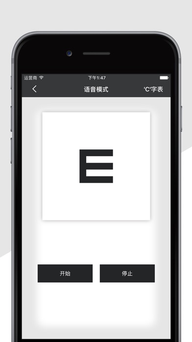 专业视力测试,不只传统视力表,更添加智能语音测视力,一个人也可以轻松测视力! **特色功能** - 集合两种传统视力表,字母E和字母C类型任你选择; - 智能语音测试,只需说出你看到的字母方向,它会自动辨别对错,方便又快捷; - 准确的测试结果,告诉你眼睛的近视情况; - 简洁的界面设计; - 简单易使用 感觉视力越来越不好?那就赶快下载测测你的视力吧!