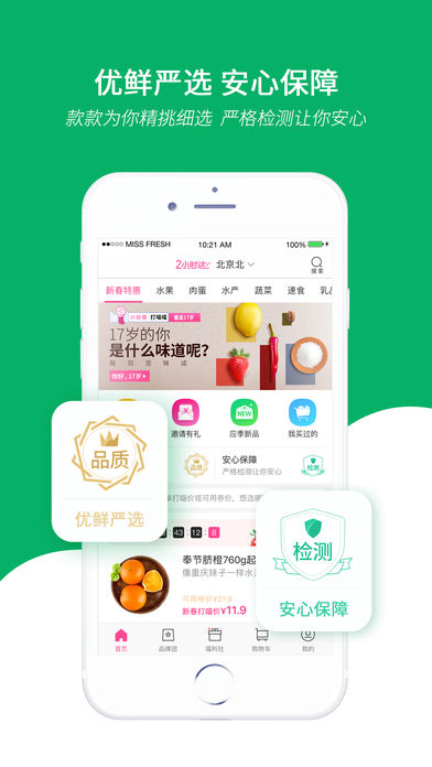 全城热卖的水果生鲜外卖app! 新人注册即送购物券,天天优惠大礼包! 应用介绍: 为了全方位满足吃货的需求,我们的商品已经涵盖了水果、肉蛋、水产、蔬菜、饮品、乳品、零食、轻食、粮油等9个品类, 是2,000,000吃货值得信赖的选择。