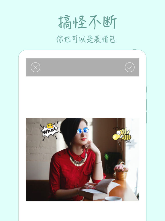 斗图P图达人必备神器! DIY自制你的专属表情包! 让你永远用最新的梗表白、恶搞,一键分享引爆朋友圈! ***特点*** - 1 –海量恶搞腹黑贴纸:冷漠脸吃货、看!有灰机、猪鼻子、大黑胡子……简直各种呆蠢萌! - 2 –多种滤镜渲染效果:铅笔彩绘、油墨、水彩、黑白、马赛克……画面贼有意境! ...... 还有更多表白、恶搞趣味模板,等你来玩!