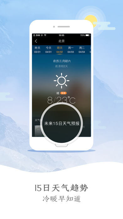 天气预报:出行必备利器!提供优质的气象预报服务!全球亿万用户的共同选择! * 长达10日的天气预报和限行预告,超过100小时的实测温度、体感温度和风力风向等气象信息 * 全国4000个市县、全球上万个城市、一千个景区的详细天气数据,无论你出行到世界何处,天气预报都为你提供精确的气象服务