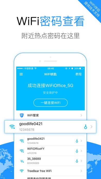 此版本为WiFi钥匙专业版,购买此版本可以享受WiFi钥匙所有的连接功能和密码服务,同时可以享受轻量应用和无广告的使用体验。是一款免费连接WiFi的上网神器,是生活中的WiFi伴侣!作为一款WLAN管理工具,WiFi钥匙内含千万热点,让你体验360°免费WiFi,畅游互联网。并且操作简单,一键点击就可解锁所有WiFi,轻松实现自动联网,,再也不用烦恼流量不够用,不再向电信,移动加流量包。另外万能的WiFi钥匙内置WiFi密码,无需在百度询问密码,更不需要上微信发朋友圈询问密码。 ——————我们的特点—————— 【免费WiFi】亿级免费WiFi,随时随地免费上网 【轻量应用】专注于解锁不含多余内容,轻装上阵 【拒绝广告】无广告、一键智能连接WiFi