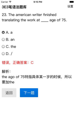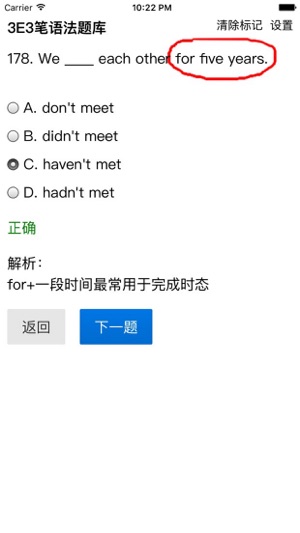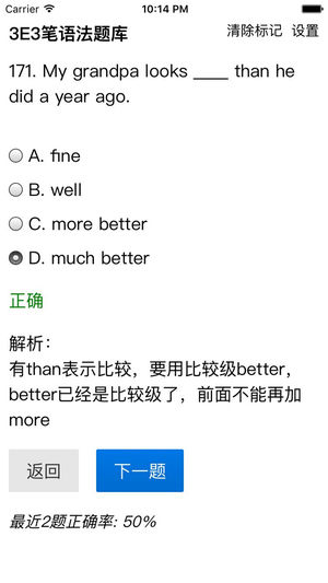 精选388道3E英语笔试三级语法全真试题及精选扩展习题,后续版本将持续扩充题库,每道题包含试题解析,可以设置倒计时,是您的孩子参加3E英语笔试三级考试的必备刷题工具。为培养小孩做题时随手圈关键词的习惯,在每道题未作答之前(倒计时中),可以用手指在题目文本的任意位置画圈、划线等。支持iOS内置词典,长按选词即可查词典。显示最近25题正确率,实时掌握刷题效果。完全无广告!