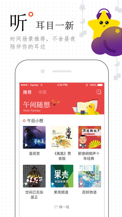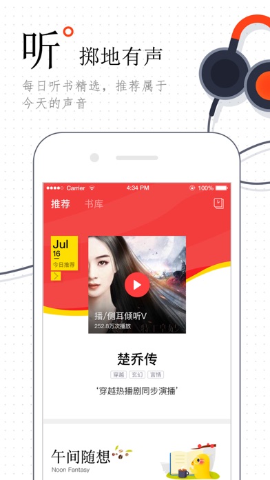搜狗听书,是搜狗公司倾心打造精品有声APP • 每天分三个时段,用声音陪伴从早到晚的多彩时光 • 七大频道更涵盖了情感,悬疑,玄幻等有声精品小说,更有名著,趣闻,电台,内涵段子,相声脱口秀等优质内容 • 播放记录收藏专辑,让你与倾心的声音不再插肩而过。更有分享功能,让好友与你一起倾听好声音 • 会员频道精彩上线,优选好书抢先试听怎么能少了你的加入 无论是行走路上,还是独自相处的时光 这里都有有耳朵能看见的风景和故事 【欢迎反馈】 • 反馈电话:010-56898080转6 • QQ反馈群:617696490 【用户评价】 【热门内容,每日更新】 • 悬疑小说:摸金天师,鬼吹灯全集,盗墓笔记,法医秦明,麻衣世家 • 言情小说:一粒红尘,楚乔传,绝世神偷:废柴七小姐,绾青丝 • 玄幻小说:一念永恒,校花的贴身高手,无心法师,从前有座灵剑山,凡人修仙传,醉玲珑 • 历史文化:瓦尔登湖刘心武揭秘红楼梦,明朝那些事儿,货币战争系列 • 趣闻知识:罗辑思维,晓说2017,一席,货币战争 • 相声脱口秀:段子来了,海阳现场秀,郭德纲,岳云鹏相声全集