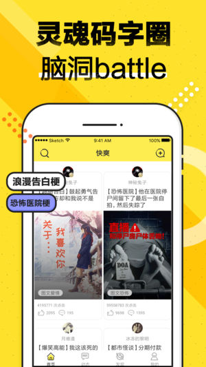 新一代的才子佳人,都在快爽小才华! 个个都是人才,说话又好听,进来你会超喜欢der! 【大开眼界】 海量神仙内容锁住你的眼睛和耳朵,奇葩脑洞故事、灵魂尬唱、小苏嗓、神颜艺……,魔性到根本停不下来! 【都是自己人】 一秒就get到专属标签,找到更多有共同兴趣的小伙伴,在圈子里玩梗互撩零障碍,确认过眼神,原来我们都是自己人! 【你本来就有小才华】 你不玩你不燥,你的才华谁知道?你下载你参与,会有粉丝pick你! 在快爽小才华,我们无限放大年轻人的自信和乐趣;在快爽小才华,我们每个人都能找到自己的闪光点;在快爽小才华,我们彼此吐槽又彼此欣赏,我们都是新一代的才子佳人! 快爽官方QQ交流④群:…