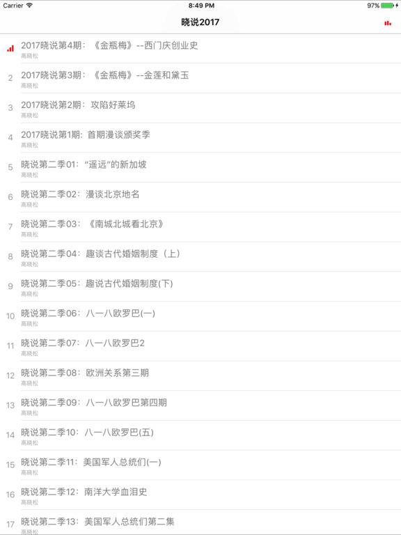 《晓说2017》4月7日高晓松重新回归晓说! 每周五不见不散,听矮大紧老师谈笑风生,聊超级碗、颁奖季,讲讲满是历史干货的小故事! 有人说,年少不懂高晓松,读懂也不再年少。 喜欢他,除了诗和远方,还因为有岁月的沉淀,通古论今的储备,信手拈来的电影艺术。