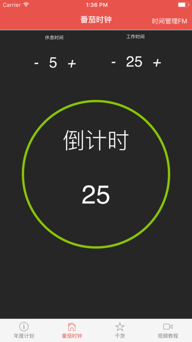 时间管理,是人们常常忽视的生活技能。 也许你常常抱怨时间不够用,常常焦虑于毫无成就感的日复一日,不知道自己的目标,或目标太过遥不可及,似乎总是触碰不到。 没错,这就是时间管理的问题。 时间管理,是一项能够迅速提升生活幸福感的技能。 时间管理APP,帮助你了解时间管理的一切技巧,并提供专业的番茄时钟小工具辅助管理。 【年度计划】科学专业的分类,制定年度计划,以年为单位的时间管理,让目标不再触不可及。 【番茄时钟】采取科学的番茄工作法,极大的提升工作效率,管理时间,专注于工作与学习。 【时间管理FM】专业的时间管理导师每天音频授课,每天改进一点点,每天更新,日积月累,你将会脱胎换骨。 【干货】精选的时间管理技巧,成功人士总结的时间管理经验,都值得吸取学习。 【视频教程】这里既有专业的科学研究者的分析报告,也有成功人士的经验共享,直观有效的帮助你进行好时间管理。