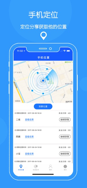 手机定位是一款对方分享定位,获取位置的软件。发一条消息给对方,对方同意定位,并分享位置,即可查看对方的位置。 是找家人,找朋友的好帮手! 支持微信,短信,邮件分享哦!