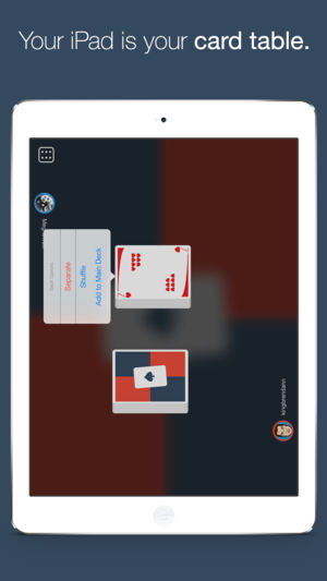 It’s not a card game. It’s every card game. The Card Table gives you a virtual deck of cards so you can play any of your favorite card games. You are in charge of the rules, such as how many cards to deal, how to keep score, and how to take turns. If you know how to play a game with a physical deck…