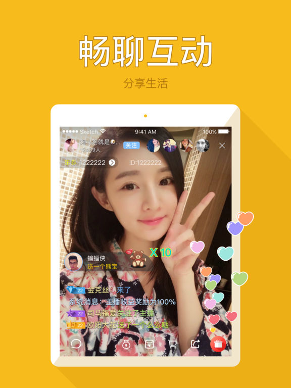 领先的真人在线直播秀场,全新的视频交友方式; 举起手机,美颜开播,你也可以变身人气主播!超多刺激好玩的直播玩法等你来挖掘~ 花样主播直播分享生活日常,记录生活点点滴滴,陪你一起度过最美的时光。 你想要的都可以在这里找到!亿万用户实时互动,弹幕聊天根本停不下来! 【万千用户】万千用户同时在线,热辣火爆小清新,网红奇葩,大V小咖云集于此 【同城交友】一键召唤,就在你身边 【实时直播】告别延迟,全面进入实时时代 【高清画质】高清画面,传递实时高清画质