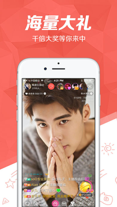 【唱歌最好听的直播平台】 用音乐展示自己,用歌声与观众互动。 这里是唱歌最好听的直播平台,汇集各类型歌手,拥有海量原版伴奏,还有演唱会、录音棚、KTV等不同音效,带给观众全新的音乐互动盛宴。 【全屏直播】 全屏直播,更极致的视听盛宴,拉近艺人与观众的距离,爱看爱听就要极致! 【手机直播】 人人都是明星,开启手机直播,随时随地直播你的所见所闻,分享属于全民的狂欢
