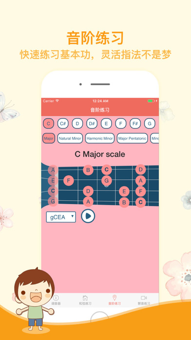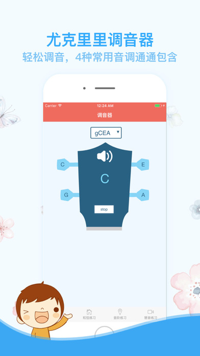 尤克里里即Ukulele,也被成为夏威夷吉他,区别于一般吉他,具有轻松入门的特点。 尤克里里有四根弦,且音色清凉,很适合搭配一些快节奏的欢快歌曲。 近两年尤克里里很是流行,很多朋友都想自学尤克里里,但想必一直都苦于没有好的学习方法。 尤克里里是一种乐器,而乐器一直都被认为是很难进行自学的。线下找老师学尤克里里也未尝不可,但既会造成较高昂的费用,也会让大家本来只是想作为一个爱好学习尤克里里却变成了约束,让人不快。 而通过网上的视频教程,质量良莠不齐,且缺乏交互,很多时候很多网上教授尤克里里的老师的自身水平也会对学习存在局限。 经过分析考量,我们觉得,成年人学习尤克里里,与幼儿学习尤克里里不同,我们需要更加像学习知识一样去学习,拆分细节,了解原理,知其然也要知其所以然。 于是,我们就推出了这款尤克里里学习工具。 首先当然是包含了尤克里里常用的调音器功能。毕竟琴弦会松动,保持正确的音准是学习尤克里里的一大前提。 其次我们通过音调拆解,指法的标注搭配,再配合相关指法弹奏的音效实录,全方位的帮助大家用正确的方式学习尤克里里的和弦技巧,音阶技巧和旋律技巧。 学习尤克里里并不难,难的是找不到合适的学习方法和学习资料,希望我们这一款学习尤克里里的小工具能够帮到您。 最后,祝您在学习尤克里里的道路上保持愉快,并早日将尤克里里学有所成。