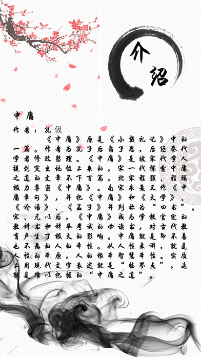 中庸,为战国时子思作。全篇以“中庸”作为最高的道德准则和自然法律。宋代把它与‘大学’、‘论语’、‘孟子’并列为“四书”。中庸之道亦被古人称为中道或中和之道。 中庸是人生的大道,是事业成功、生活与健康的根本理论,基本包含三层意义: 第一层意义:中不偏,庸不易。是指人生不偏离,不变换自己的目标和主张。这就是一个持之以恒的成功之道。孔子有曰:“中庸之为德也,其至矣乎!民鲜久矣。” 第二层意义:指中正、平和。人需要保持中正平和,如果失去中正、平和一定是喜、怒、哀、乐太过,治怒唯有乐,治过喜莫过礼,守礼的方法在于敬。所以月牙山人说:只要保持一颗敬重或者敬畏的心,中正、平和就得以长存,人的健康就得以保障。 第三层意义:中指好的意思,庸同用,即中用的意思。指人要拥有一技之长,做一个有用的人才;又指人要坚守自己的岗位,要在其位谋其职。 - 收录将近33篇作品。 - 支持字体大小设置。 - 内置强大的搜索引擎,同时支持关键字、拼音搜索。 - 支持收藏功能。 - 支持最近浏览历史功能,让应用更贴心、更懂你。