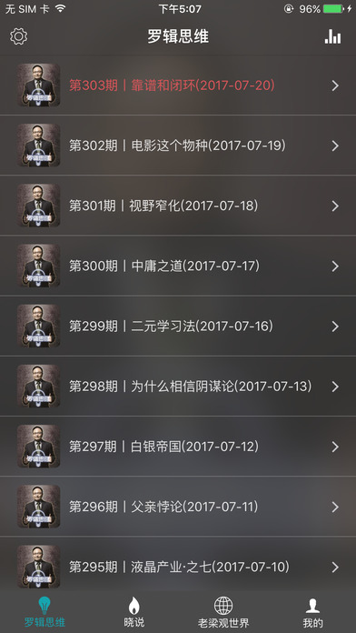 有种、有趣、有料,这就是他的罗辑思维! 罗辑思维有声全集,每周五及时更新,罗胖高端脱口秀,让你在知识中寻找见识! 没有内置广告,绝不强制评论,界面更优雅,欢迎您的收听