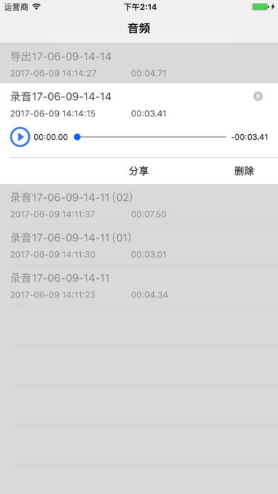 易剪是一款易用简单的录音和音频剪辑工具,可能无限次插入录音,亦可以单独作为录音笔长时间录音,可以方便的截取和合并音频,添加音效处理,支持剪辑操作的撤销、重做,支持超高精度的剪辑音频。 易剪 支持 录音时添加混响效果器,合唱效果器,无论您录制吉他弹唱,还是钢琴独奏,还是课堂演讲,都给你带来高品质的录音。 易剪支持音频剪辑 当您录音时 有部分的瑕疵,没关系,您只需要剪掉瑕疵的部分,补录就可以完成您的创作了。 您想自己制作个性的手机铃声,只需要导入,易剪帮您精确的剪辑您独一无二的铃声。 支持导入方式: iTunes库导入,Airdrop音频导入。 支持导入音频格式: m4a,aac,mp3,mp2,ALAC等音频。 支持导出音频格式: m4a,mp3。 共享方式: 1) 支持QQ,微信,facebook,等软件直接发送给好友。 2) 支持邮件发送给好友。 3) 支持Wifi局域网FTP共享导出。