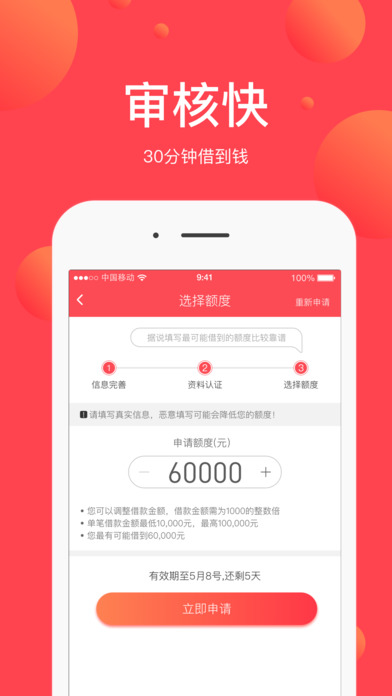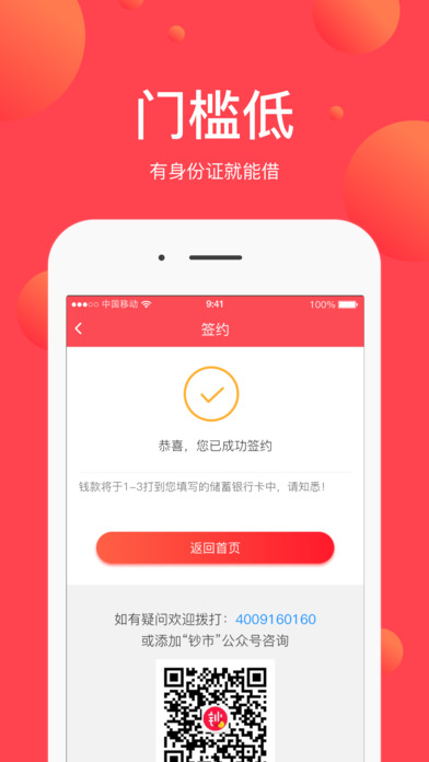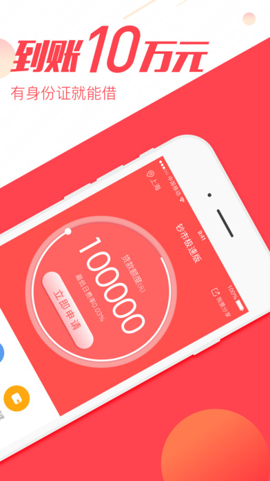 钞市是一款致力于解决用户借钱难、为用户提供全面借贷信息服务的产品。钞市基于用户在线申请,结合新型机器学习算法和互联网大数据风控技术,为用户推荐快捷方便的借款服务,根据用户的信用资料评级,准确匹配相应的借款产品。同时提供借款进度查询、分期还款管理、借贷行业资讯等功能,为用户提供安全、便捷、高效、透明的借款综合服务。 【借款便捷】 手机线上申请,支持您随时随心借钱、实时查看借款进度,便捷高效的解决您的借款借钱问题! 【审批快速】 放款快-最快10分钟下款、额度高-最高额度50万、门槛低-凭身份证借款。 【安全可靠】 银行级专业客户资料管理体系,对借钱用户信息进行强力加密处理,借款用户隐私安全有保障! 【平台特色】 1、极速贷款:方便用户借钱、借款、贷款,小额贷款放款快,能实现当天审核当天放款 2、大额贷款:额度自由选择,小额借款秒批,大额借款高至50万,解决您的资金难题 3、信用贷款:通过大数据分析技术智能匹配您的个人信用,纯信用借款平台无抵押无担保 4、专业服务:提供丰富的借款贷款产品,信息安全可靠,服务更专业 5、操作简单:钞市借款平台手机申请、网贷分期、流程简单,让您轻松就能借钱
