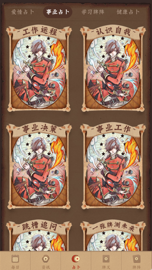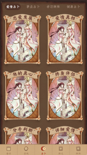 想要获得精准的人生占卜指引吗?需要全新的塔罗占卜给您提供人生的解决方案吗?塔罗牌占卜提供免费的占卜测算服务,全新的84种牌证,为您解决爱情,学习,事业,财运,健康,运程六大方面的问题。 【占卜玩法】22张大阿尔卡拉牌的经典玩法,结合塔罗师精心设计的84种牌阵,每张都图文并茂的为您提供牌义的解释,让您清楚的知晓您在爱情,学习,事业,财运,健康,运程的未来方向,让你更加了解您的过去,现在,未来。 【塔罗占卜】塔罗牌最早出现于15世纪的意大利,它是一种古老的占卜工具,本应用由多位塔罗名师设计精准的测算公式,为你提供84种神秘牌阵。本塔罗牌是现在全球领先专注在塔罗上的免费应用,涵盖了各种流行、实用…