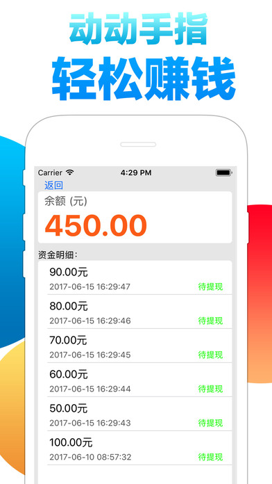 轻松做任务,轻松得现金!轻松赚钱! 我们的特色: 1、精选简单任务,有手机动动手指即可赚钱 2、红包随时有,享受拆红包的快感 3、随时随地都能赚,上班也能赚第二份工资 4、任务多,不愁没得赚 5、无门槛,轻松做任务赚现金 6、结算简单,支持微信、支付宝和国内主流银行卡提现,方便快捷
