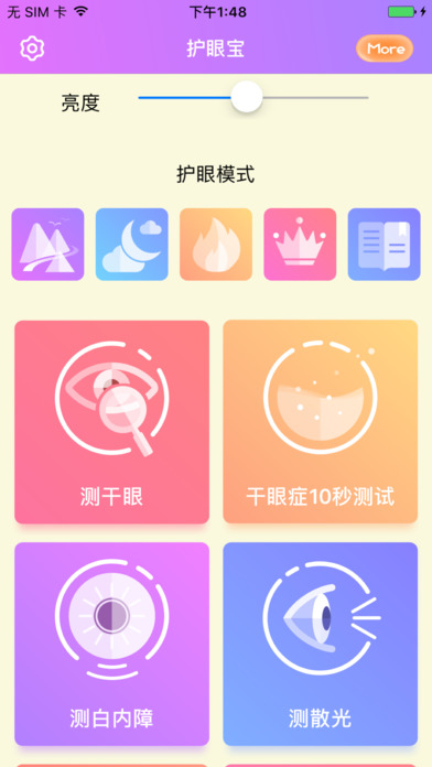 眼睛是心灵的窗户,护眼助手是一款帮助检测各种眼部疾病症状的应用,青光眼、白内障、玻璃体混浊、视网膜脱落、眼干涩、老花眼、散光、弱视、散光、近视、色盲等各类眼疾一旦出现便很难治愈,随时监测眼部健康情况,预防大于治疗。 *主要功能* - 通过各项测试检测是否患有眼病:测干眼、白内障、散光、视网膜病变、色觉、视力等症状 - 视力检测、色觉检测,十款炫酷神奇的小游戏,评测眼部健康状况 - 眼睛健康计划、护眼百科知识科普,提前预防好过患病治疗 一切只为保护您的双眼,爱护眼睛从这里开始!