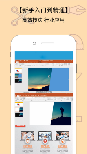 PPT教程-Microsoft office Powerpoint是微软公司设计的演示文稿软件。可以在投影仪或者计算机上进行演示,PPT制作已经成为办公室必备技能之一。 PPT不是简单的文字、图片的堆砌。而要上升到艺术的高度,您想让自己的PPT做得更好吗?来吧,跟着教程的节奏,让你成为PPT高手。从基础开始,细致入微向您讲关于PPT制作的每一个细节。 每天学习一点ppt,让幻灯片/演示文稿变简单。