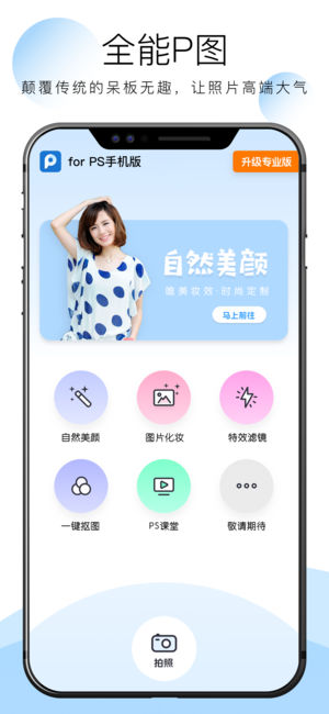for PS手机版-图片编辑|p图修图PS软件,本app由PS教学,在线P图美图两部分组成。 主要内容: 1.Photoshop完全自学教程内容涵盖PS的工具和命令讲解,是不可多得的完备学习资料。详细介绍Photoshop的基础知识、实用技巧、数码暗房、文字与按钮、滤镜与笔刷等操作方法及其在各平面设计领域中的应用。 通过画笔、抠像、调色与材质让大家深入了解Photoshop的核心功能。 从大家日常生活、学习和工作的实际需求出发,从零开始,逐步深入,突出实战操作与实用技巧的传授,真正让读者学以致用、学有所用。 适合作为从事平面设计、影像创意、网页设计、数码图像处理的广大初、中级人员的自学…