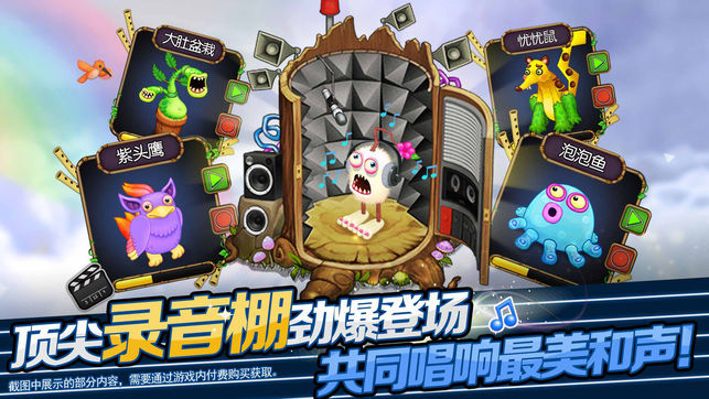 la~lala~la~哈喽喂,欢迎来到怪兽合唱团!让可爱的怪兽们为你来一场独一无二的演奏会吧! 怪兽合唱团能满足你成为音乐大师的梦想,还在犹豫吗?快来和你亲手培育的怪兽们,开启华丽乐章吧! 【音乐与梦想的完美结合】 脑袋发出pong~pong~声的打击怪,嘴巴吹奏出嘤嘤嘤的演唱怪,外星来客悠远的奇妙声音~把喜爱的它们聚集在一起,演出一场华丽乐章! 【成长与经营之旅】 为Q萌的小怪兽烘焙美味食物,装点漂亮舞台,建造岛屿,亲自培育和抚养呆萌的怪兽宝宝,为华丽乐章注入新鲜奇妙的音符! 【探索与想象的碰撞】 小怪兽们拥有各自岛屿,独一无二的性格和音域,发挥想象,让它们在专属岛屿中演奏更加美妙动听的歌…