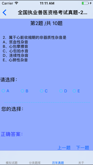 本软件为国家执业兽医资格考试兽医全科类题库的软件,精心准备了2017年最新考试题库。A1、A2、B1、A3、A4型题,部分并有答案解析,历年真题以及章节练习。为考试的提供了充分的复习准备,可随时随地学习练习,有效帮助顺利通过考试,学习知识通过考试必备神器! 【2017题库介绍】 基础科目 兽医法律法规与职业道德 A1、A2、A3/A4、B1试题及解析 动物解剖学、组织学与胚胎学 A1、A2、A3/A4、B1试题及解析 动物生理学 A1、A2、A3/A4、B1试题及解析 动物生物化学 A1、A2、A3/A4、B1试题及解析 兽医病理学 A1、A2、A3/A4、B1试题及解析 兽医药理学 A1…