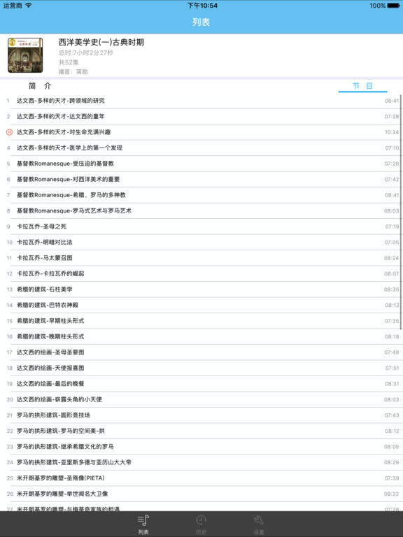 蒋勋先生的《西洋美学史(一)古典时期》有声书。 这本书分古代美术、近代美术、现代美术三个部分,以时间的顺序阐述了西方美术在人类文明的历史长河中的发展与演绎,其中包罗了建筑、雕塑、绘画等艺术的各个领域,而以国家、以地域、以流派一一加以介绍、分析、评述。对于学习美术的学生,或其他艺术爱好者,或者说那些“在第一层住得有点不耐烦的人”,都是一本不可多得的入门好书。而且,以丰子恺先生那散文家的文笔,艺术家的眼光,即使使用的是上个世纪三十年代的语言文字,即使阐述的是美术史这样的理论,仍然显得通俗流畅,浅显易懂。