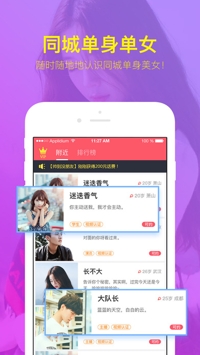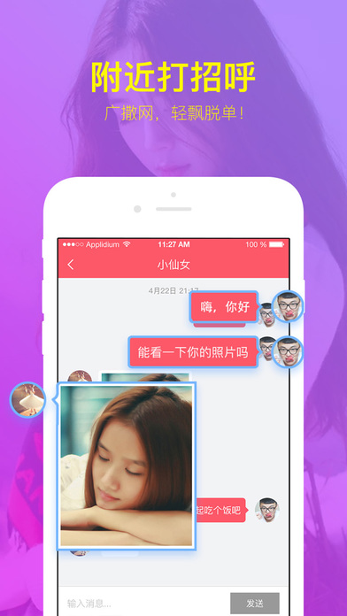 “相约交友”是基于陌生人交友的娱乐社交APP,让交友不再枯燥,让广大男女摆脱枯燥乏味的生活,得到现实中没有的好玩有趣的社交体验,打发无聊的闲暇时间。 “相约交友”提供有缘广场功能,根据您的条件筛选帅哥美女,发现心仪的对象后可以申请邀约TA进行线下约会,甚至恋爱、结婚哦。