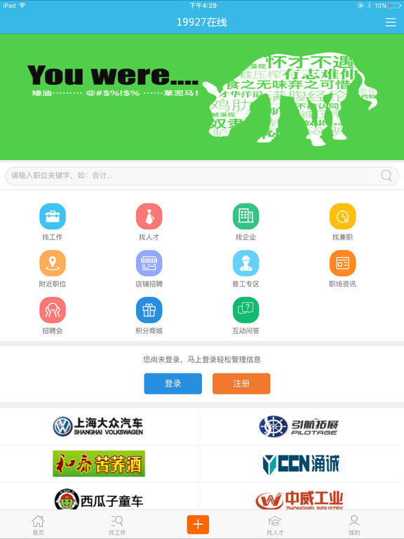 19927在线是全国权威人才求职招聘类型的APP,为求职者提供最新最全的招聘信息,为企业提供网络招聘,校园招聘,猎头,培训,测评和人事外包等一站式专业人力资源服务。