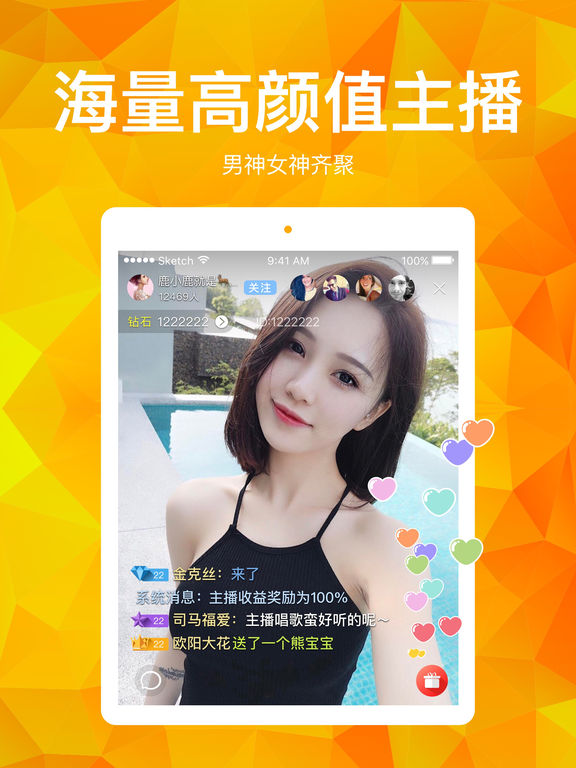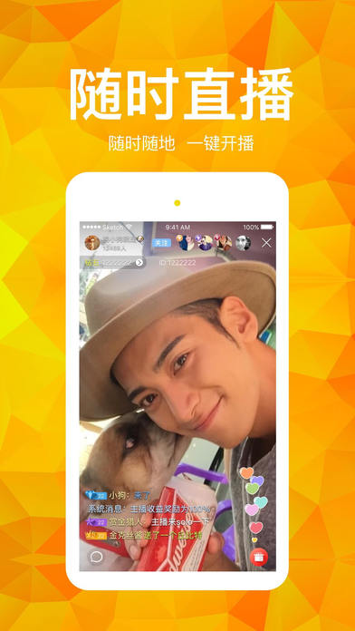 领先的真人在线直播秀场,全新的视频交友方式; 举起手机,美颜开播,你也可以变身人气主播!超多刺激好玩的直播玩法等你来挖掘~ 花样主播直播分享生活日常,记录生活点点滴滴,帅哥美女陪你一起度过最美的时光。 你想要的都可以在这里找到!亿万用户实时互动,弹幕聊天根本停不下来! 【万千用户】万千用户同时在线,热辣火爆小清新,网红奇葩,大V小咖云集于此 【同城交友】一键召唤,就在你身边 【实时直播】告别延迟,全面进入实时时代 【高清画质】高清画面,传递实时高清画质 【特效礼物】动画效果,令你大饱眼福 【封神榜单】竞争激烈,你能拔得头筹吗 【私密聊天】寻找我们不能说的悄悄话