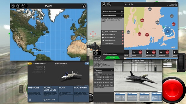 THE MOST ADVANCED FIGHTER PLANE COMBAT AND FLIGHT SIMULATOR Realistic world maps and navigation, over 500 actual airports, 1,107 runways, aircraft carriers and real time weather conditions. NOW WITH MULTIPLAYER FEATURES. Plan and share your tactical scenarios, test yourself in the world campaign, f…