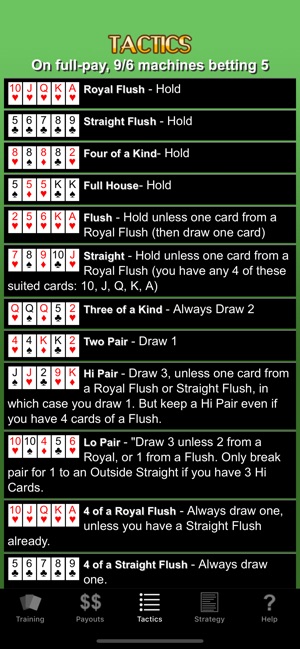 Part Card Analyzer, Trainer, Simulator, and Strategy Guide, this app is a must for anyone that plays Jacks or Better Video Poker. The easy to learn tactics and handy hand calculator will turn you into an expert in no time. Great for both beginners and experts. - Easy to memorize tactics - Three lev…