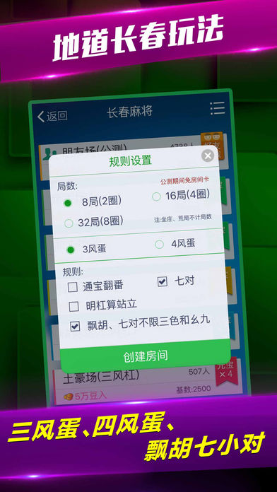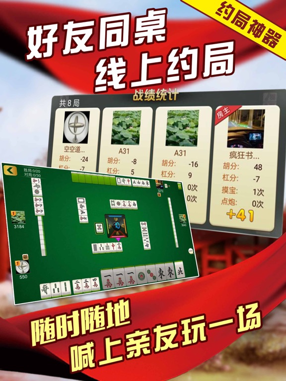 约局神器-好友同桌,在线约局,随时随地喊上亲友玩一场! 游戏特色: 1、小鸡飞蛋,点炮全包,三风蛋,四风蛋,飘胡七小对,不限幺九不限色等长春地区最新玩法。 2、刨幺,填大坑,三打一等12款经典棋牌游戏多合一,一次下载畅玩多款。 3、斗地主比赛,免费参加,随到随比。 4、全程防作弊。