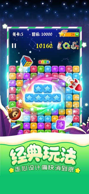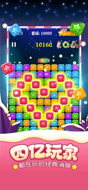 【对战玩法-随机匹配】全新对战玩法华丽来袭,在原有消除玩法的基础上,进行了创意设计,玩家可以在游戏中进行消除对战,在限定时间中,通过消除星星互相投掷障碍物,增加了消除乐趣,带来了全新的游戏体验。 【走心设计-痛快消到底】全球累计拥有4亿玩家,深受玩家喜爱。游戏画面清新,玩法简单易上手,只要点击相邻的同色星星即可消除得分,没有关卡限制,是一款一旦开始便停不下来的轻松益智小游戏。 【拼消新玩法-星星连萌】"消灭星星与"与"俄罗斯方块"的完美结合,诞生创意与经典的纯真快乐!新玩法简单更有趣,只要将各种形状的星星填满一行或一列即可完成消除。你只需要下载一个游戏,就能够体验两种玩法,怎么消除都将快乐…