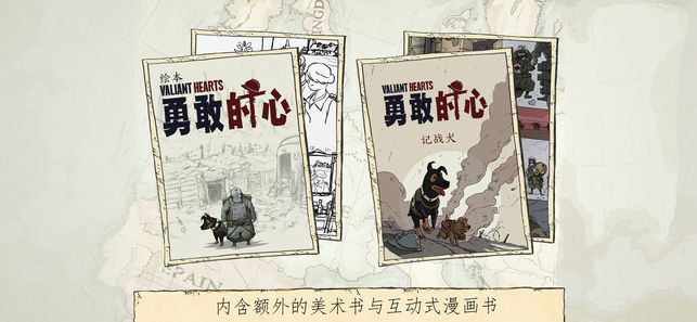 这个故事所讲述的,是一个四分五裂的世界中所发生的命运交织,以及一段破碎的爱情。 现在下载 Valiant Hearts: The Great War 即可免费获得根据游戏改编的互动式漫画书。 在这本结合了动作、迷团和冒险内容独特的图像小说中,发生在 4 个无名英雄卷入第一次世界大战的无名英雄身上的故事。 Valiant Hearts : The Great War 是一个剧情式游戏灵感来自第一次世界大战的书信,并由 4 个章节所组成的游戏。 可游玩的图像小说 一款让人心动的冒险游戏,有着独特的气氛和艺术风格。 混合了探索、动作和解谜要素 通过解决难题或潜入敌方战线,来帮助游戏中的英雄在…