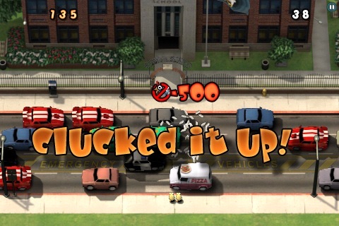 Why did the chicken cross the road? A timeless mystery, solved once and for all by ... Cluck It! Representing the pinnacle of road crossing action, Cluck It! combines easy to learn controls with over 50 levels. Can you master eight lanes of high speed challenge? CROWING #1 Paid App in Mexico! #1 Arcade Game in Kuwait! #3 Arcade Game in Hong Kong! #5 Family Game in Australia! This game is highly addictive and enjoyable which makes a dangerous combination. - App Inspectors you can't go wrong with this one. - ImNoSuperMan I was surprised by how much I enjoyed the single touch/button approach ... it worked so well and added a fascinating strategy element. - Azahru INCREDIBLY SIMPLE AND ADDICTIVE - Get the baby chicks to school on time. - Amazingly easy to learn single touch controls. - But don't get boxed in, and watch out for roadworks! COMPELLING REPLAYABILITY - 50 levels to unlock in 5 chapters, from 2 easy lanes, to 8 lanes of ludicrous speed! - 5 Star Levels you'll want to play over and over. - Re-play your favorite chapter to improve your score. - Hood Hop for bonus points by crossing in front of cars. - Chain Hood Hops for even more bonus points. - But don't run out of time while playing chicken! OTHER - Play in-game music, or music from your library. - Saves progress and tracks scores across each level.