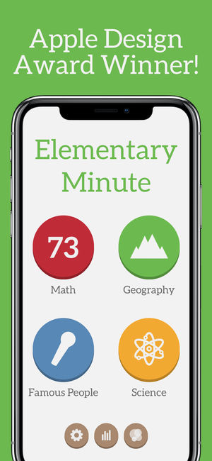 *** Apple Design Award 2015 winner *** Elementary Minute is an fast paced trivia game, where you are presented with statements from topics like Math, Geography or Science. Quickly swipe up or down to decide if the statement are true or false. Features: - 4 Topics - 2 Modes (Classic & Rush) - Apple…
