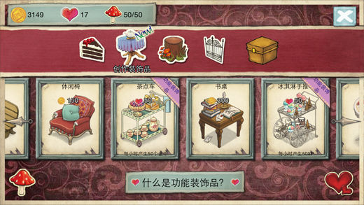 ¥0(免费) 免费下载活动! ------------------------------------------------ *故事 爱丽丝和她的爱猫黛娜。 某一天,黛娜跑掉了,爱丽丝在追赶黛娜的途中碰到了柴郡猫, 并且不知不觉闯入到了不可思议的世界,得知黛娜貌似被红桃皇后夺走了。 “糟了!” 为了从红桃皇后那里抢回爱猫黛娜,爱丽丝听从了柴郡猫的主意, 开办了超级点心茶会。 “柴郡猫先生,你确定这个主意真的好用吗” *游戏特色 ①原作中的角色超多登场 柴郡猫,红桃皇后,三月兔等等,熟悉的人气角色超多登场! 收集点心,开办点心茶会,可以把他们全部招待过来哦。 ②奇异又可爱,有趣丰富的装饰物品 收集不可思议的世界的装饰物品,来创造属于自己的奇异王国吧! ③收获点心树上结出的点心! 夹心蛋糕卷,樱桃派,马卡龙等,美味点心大集合。 那种点心会使大家食欲大爆发呢?