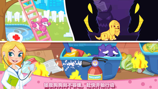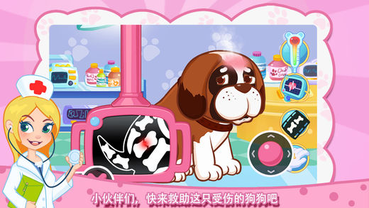 “汪汪汪~嗷嗷嗷~”。亲爱的小医生,好像有狗狗在叫,快去看看怎么回事吧!哦~原来是不少狗狗都生病了,还有的陷入了各种困境,这可如何是好? 啊哈~作为一名厉害的小医生,你一定能够帮到这些小家伙,赶快助它们脱离困境,再接回家中治疗吧。家里不仅有先进的医疗设备让你施展精湛的医术,还有宽敞舒适的花园和干净明亮的浴室可以使用哦。如果狗狗饿了,你还可以给它们弄点好吃的!最后,抽点时间多陪陪狗狗们好吗?或者带上它们一起去旅行! 拯救狗狗刻不容缓,准备好了就赶快行动吧! 游戏玩法: 进入游戏,你将来到宠物选择界面。首先请选择一只狗狗并去它受困的地方看看吧,然后请根据提示帮助它脱离困境。别忘了刚被救出来的狗狗还受着伤呢,赶紧把它带回家诊治吧,家中齐全的医疗工具将会是你的得力助手哦。等狗狗康复后,何不把它留在身边?你不仅可以照料它,同它一起玩耍,还可以带它到处旅行、拍照合影哦。如此重任就交给你啦,你一定不会让狗狗们失望的,对吧? 游戏特色: - 6只有着不同遭遇的狗狗 - 5种诊断工具和多种医疗设备助你事半功倍 - 拯救、治疗、照顾三大阶段环环相扣 - 欢乐的互动体验:例如为狗狗沐浴、换装、喂食等 - 其中还有9种精美有趣的玩具和5个风景怡人的旅行地点 - 如需帮助,或者有任何想法、建议,请随时联系我们,邮箱地址:WeCare@libii.com 用户须知: 这个游戏的下载和使用完全免费,其中一些基本物品也可以免费使用,但是请注意,有一部分附加物品是需要您购买并付费之后才能解锁使用的,因此,如果您不想使用这类附加物品,也为了防止意外购买的纠纷,请您在设置中关闭购买应用软件这一项,谢谢您的配合。