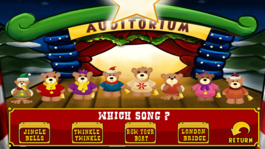 This ain’t your father’s xylophone! In Tap Tap Bear Piano you get to tap your way into learning these 4 classic children's tunes: Jingle Bells, Twinkle Twinkle, Row Your Boat and London Bridge. Just tap the bears when the falling stars line up with the star containers. You will be making music in no time! Tap Tap Bear Piano is a simple piano made from 8 little bears that animate and play sounds as you touch them. You can hide Learn mode but have Record & Play options in Artist mode or you can have all options hidden in Beginner mode. Master mode has all options available. We hope you enjoy Tap Tap Bear Piano!