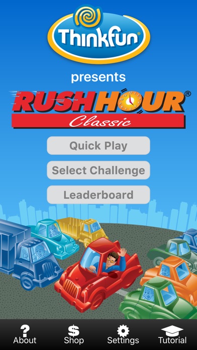 This is the original sliding block Traffic Jam puzzle, brought to you by the company who created it – ThinkFun. This Rush Hour game comes with a whopping 2500 challenges, ranging from Beginner to high Expert. It's a brilliant range of challenges, if we do say so ourselves… you're going to have a lot of fun on your iPhone with Rush Hour! This is the ORIGINAL Rush Hour – and it’s also the BEST. ************************************************** HOW TO PLAY: Your goal is to get the Red Car out the Exit Gate. To accomplish, just move the blocking Cars and Trucks out of the way. At ThinkFun, we believe in efficient driving. So for each challenge, we track your moves against the minimum distance possible, and score you on how close you came to a perfect distance score. Each challenge becomes a quest in itself! For your moments of frustration, we’ve included a HINT button. If you need a big boost, we also provide a SOLVE button. We recommend you fight your way through and never use these, but they’re nice to have available. ************************************************** GAME FEATURES: - 2500 Games, 625 at each difficulty level - Four difficulty levels – EASY, MEDIUM, HARD, EXPERT - Measures your score against your Personal Best and Perfect Score - Save multiple games in progress - Hint/Reset/Undo buttons to help you figure out each puzzle - Solve button to see how it’s done - Quick and easy Tutorial - Keeps history of Solved and Perfectly Solved challenges The Rush Hour app has won a 2010 Parents' Choice Gold Award for excellence in mobile play and a 2011 Editor's Choice Award from Children's Technology Review. If you like Rush Hour, check out Solitaire Chess and visit www.thinkfun.com to see more great games from ThinkFun!