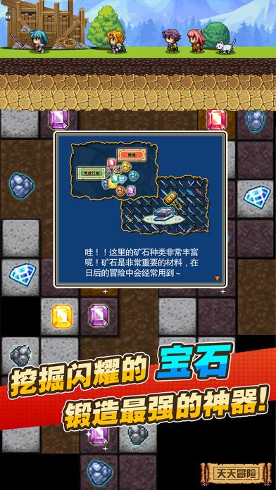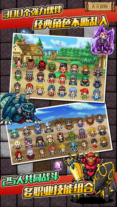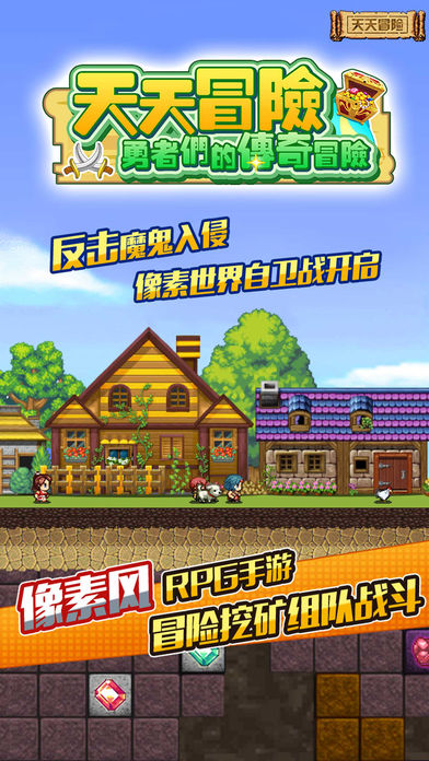 ※中国区苹果推荐的像素放置游戏No.1※ ※玩过开罗游戏的就知道,耐心玩10分钟绝对让你越陷越深,无法自拔! (*^_^*)玩家-蛋蛋 ※非常好玩容易上瘾的放置游戏。各方面无可挑剔,诚意满满,值得推荐! (*^_^*)玩家-小蘑菇 ※像素游戏里面有种不一洋的东西,那就是童年的回忆!与众不同的手游! (≥◇≤)玩家-小德 ------------------------- 老老村长: 勇者~ 魔王入侵像素世界了! 带上马里奥春丽八神路飞斧王鸣人樱木飞影赵云悟空啊(咳…像这样的带300个) 救救我们!我的漂亮孙女们都被抓走了! 勇者: MM们出事了!⊙.⊙ 擦!我来了!爷爷! ------------------------- 《天天冒险》是一款在像素沙盒世界中冒险、挖矿、战斗的2.0放置手游。创新的放置式战斗,最多25个伙伴共战。无尽的沙盒地心世界蕴藏无数宝石,更有强力BOSS让你战不停。 放置挂机玩法,离线也能持续获得收益,升级so easy!史上最好玩的放置类手游! ------------------------- =( ̄▽ ̄)~*~( ̄▽ ̄)= 天天冒险No.1的像素放置 感谢天天冒险老玩家支持 在此向经典开罗游戏致敬