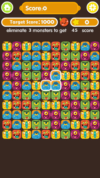 《消灭小怪兽》是一款卡通风格的消除类休闲游戏。 点击两个或更多相同的小怪兽来消除他们,游戏没有时间限制,但是每一关有目标分数。小怪兽喜欢吃苹果,落单的小怪兽可以给他吃苹果来消除他。 小提示: - 你同时消去的小怪兽越多,就能得到越高分 - 最后剩下的小怪兽越少,得到的奖励越多 - 你需要经过仔细思考,才能得到更高的分数