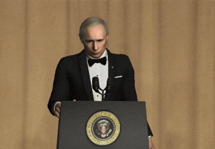 比如我选择普京大帝的照片作为替换的头像,然后选择奥巴马的这张动图,软件处理一段时间,几秒后便能生成换脸后的 GIF 图片。然后可以添加文字,或是保存到本地,还能选择分享至社交媒体。当你分享三张图片之后,便可以解锁更多的 GIF 素材了。