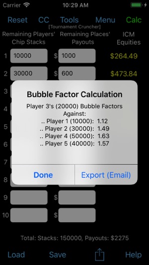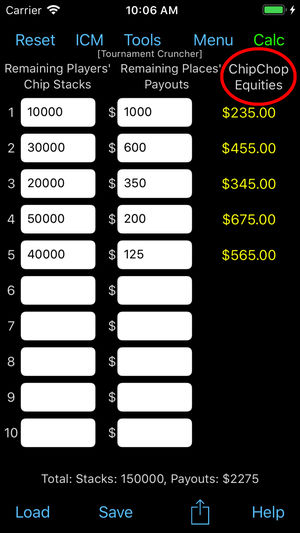An advanced poker tournament calculator and analyzer to give you an edge in tournaments. *** Pay once and enjoy forever *** No in-app purchases/fees. Continual improvement for many years. 1) An ICM (Independent Chip Model) calculator 2) A ChipChop calculator 3) A final table chop dealmaker - compa…