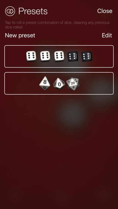 A dice rolling app, perfect for tabletop games, classroom/school use or if you just like to roll some dice now and then. Featuring state of the art dice simulating features like: - 2, 4, 6, 8, 10, 12 and 20-sided number dice. - Coins and Fudge +/- dice. - D100 dice rolls using two special 10-sided dice. - Decently realistic physics simulation with collisions, shake detection and device gravity option. - Create presets of dice combinations to roll quickly. - Drag to move and group dice. - Tap to remove or lock dice when re-rolling. - Roll dice of two different colors/materials together, getting a separate total for each. - Shake to quickly re-roll the current dice. - Dice collision sounds. And it's pretty nice looking with: - Detailed nicely rounded dice models with high-resolution textures. - Per-pixel dynamic lighting with bump mapping, reflections and soft shadows. - Clean modern interface. - Many different dice materials to choose from (Like red, white, pink, orange, steel, obsidian, gold, or even glowing radio-active or magical dice) - A bunch of backgrounds to choose from (Like different color felt, wood, metal, leather, slate or cloth) ** NO IN-APP PURCHASES, NO ADS *** Since this received a lot of negative user reviews there is no longer a free version of the app to download and try with an in-app purchase to unlock the full functionality. Instead the app now costs money, but everything is included with no extras to purchase. NOTE: This is just a dice roller simulator, a substitute for actual dice. It is not a game or specialized tool for specific complex dice rolling calculations or scenarios. It's just dice, you roll them and you get numbers. However, as you can lock and combine dice you can easily use it to play simple dice games like yatzee or such. For more iOS apps and Mac applications, go to https://www.lostminds.com
