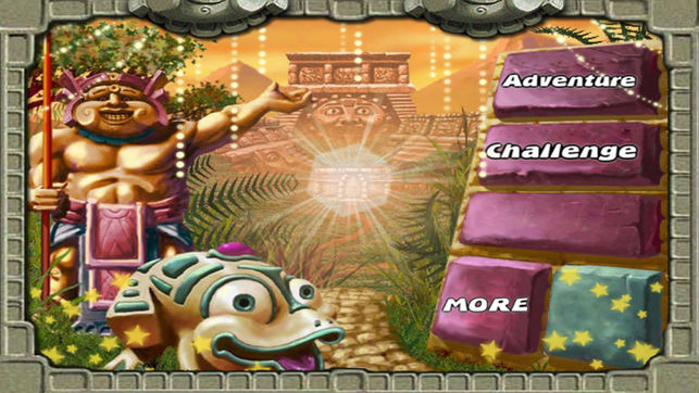 古老的界面,神秘的印加背景音乐,加上游戏的主人翁-青蛙祖玛坐在其中,吐出各种颜色的珠子。环绕着石青蛙的是载着彩球的轨道,彩球会沿着轨滚动。石青蛙吐出彩球进入轨道,轨道上颜色相同的彩球,数量达到三个以上就会消除得分。看似简单的游戏经过精心巧妙的设计后,让人玩起来趣味无穷。 还原了最最经典的祖玛原版首次登上APPSTORE,一起来重温古老神秘的印加文化吧!