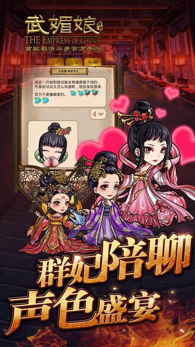 史上最霸气、最妖艳的宫斗巨制手游《武媚娘传奇》强势登陆App Store! 10月新版本:英雄关卡、奇珍宝匣、私人府邸 【《武媚娘传奇》必玩理由】 ***正版授权,群星跨界助战*** ***宫斗巨制,极致策略养成*** ***权力游戏,全服皇权大战*** ***华服盛宴,尽享妖娆霸气*** 一代女皇君临天下,邀你一起指点江山!带你体验做君王的感觉! 英雄关卡,全新挑战! ---全新英雄关卡,英雄们整装待发,奖励应接不暇。完成挑战成就,即可获得通关与成就奖励,大量卷宗,锻造石任你拿。 收纳天下奇珍,大幅提升战力! ---将奇珍收纳入奇珍宝匣中,可获得奇珍的稀有属性加成,作战能力大幅提升,多种稀有属性,满足您各种需求! ---玩家可通过辨识获取奇珍,奇珍可使用奇珍碎片强化,收纳强化过的高品质奇珍,收益十分明显哦!辨识奇珍所用的本草经可在闯掖庭100层之后掉落。 拥有私人府邸,不再四海为家! ---美景豪宅,免费赠送,达到对应等级即可获得豪华府邸一座。玩家还可拜访好友府邸,登门挑战。 ---完成府邸香坊采集任务,可获得大量奇珍碎片奖励,使用高级道具采集更会获得奇珍,本草经等额外奖励! 【联系我们】 官网:wmn.me.cn 微博:@武媚娘传奇手游 微信:武媚娘传奇手游 客服QQ群:425985755